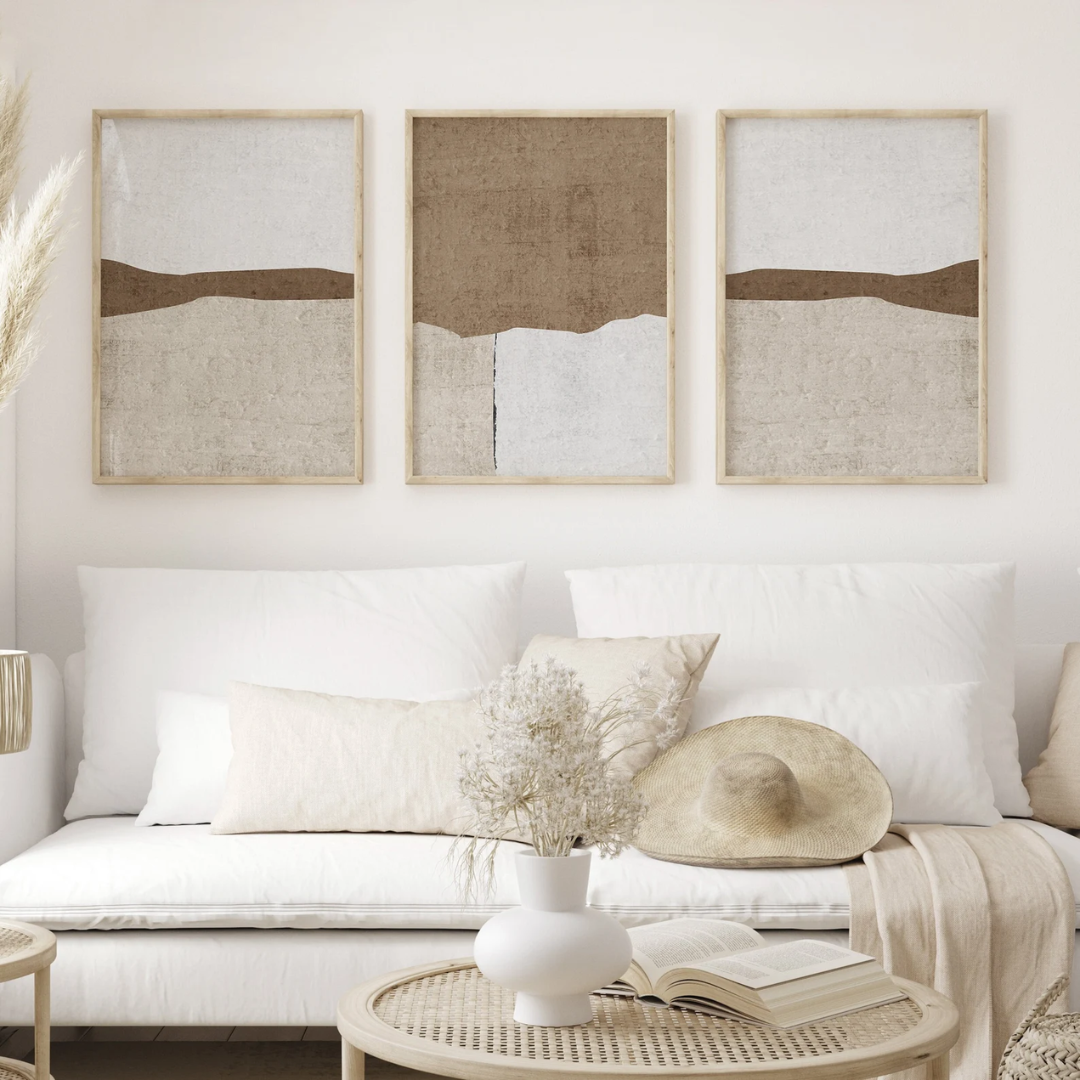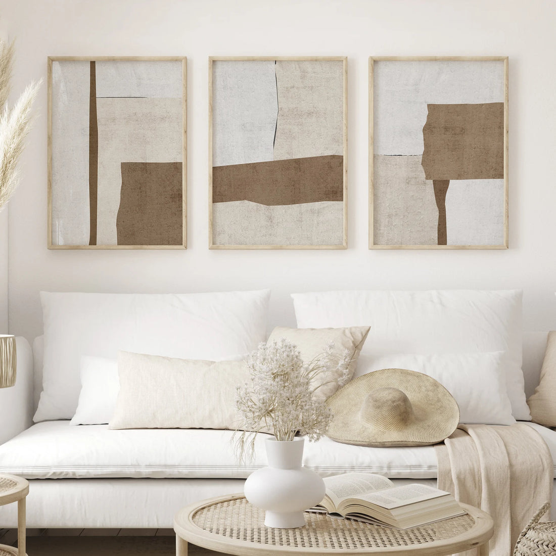 סט אבסטרקטי 3 תמונות - בגווני חום ניטרליים