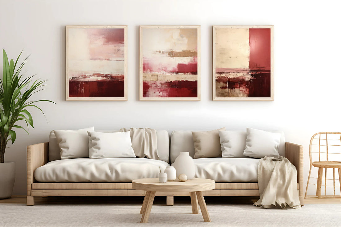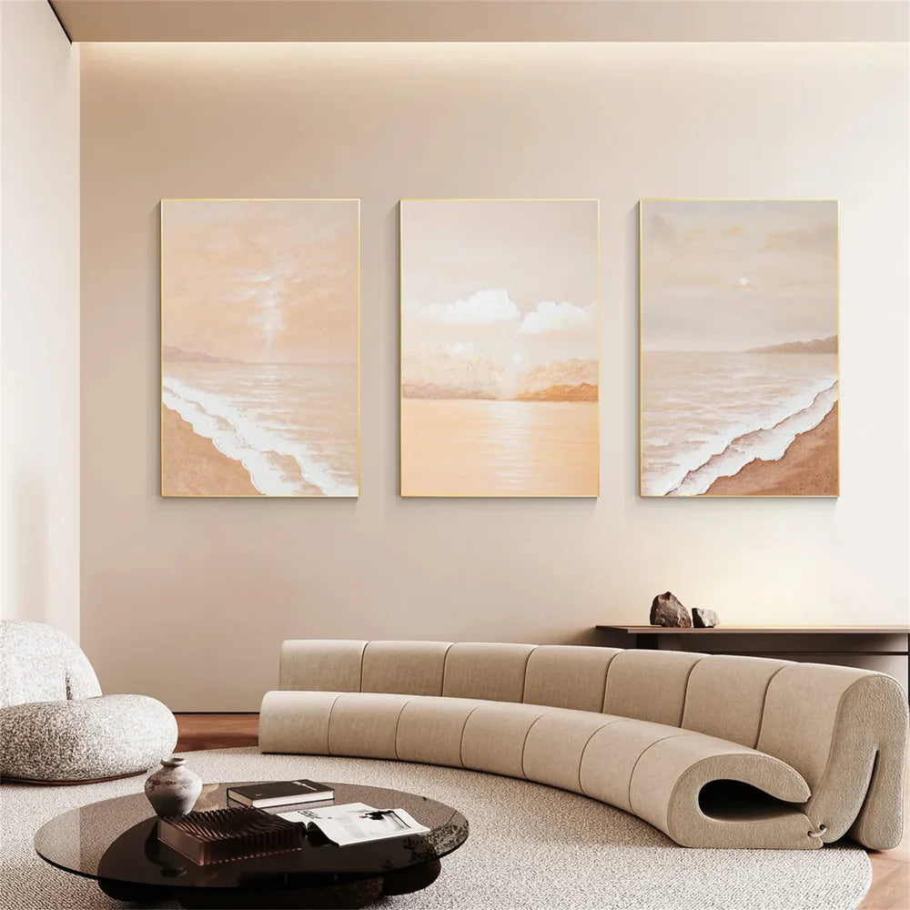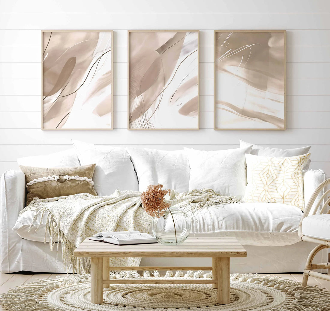 סט אבסטרקטי 3 תמונות - בז' מודרני