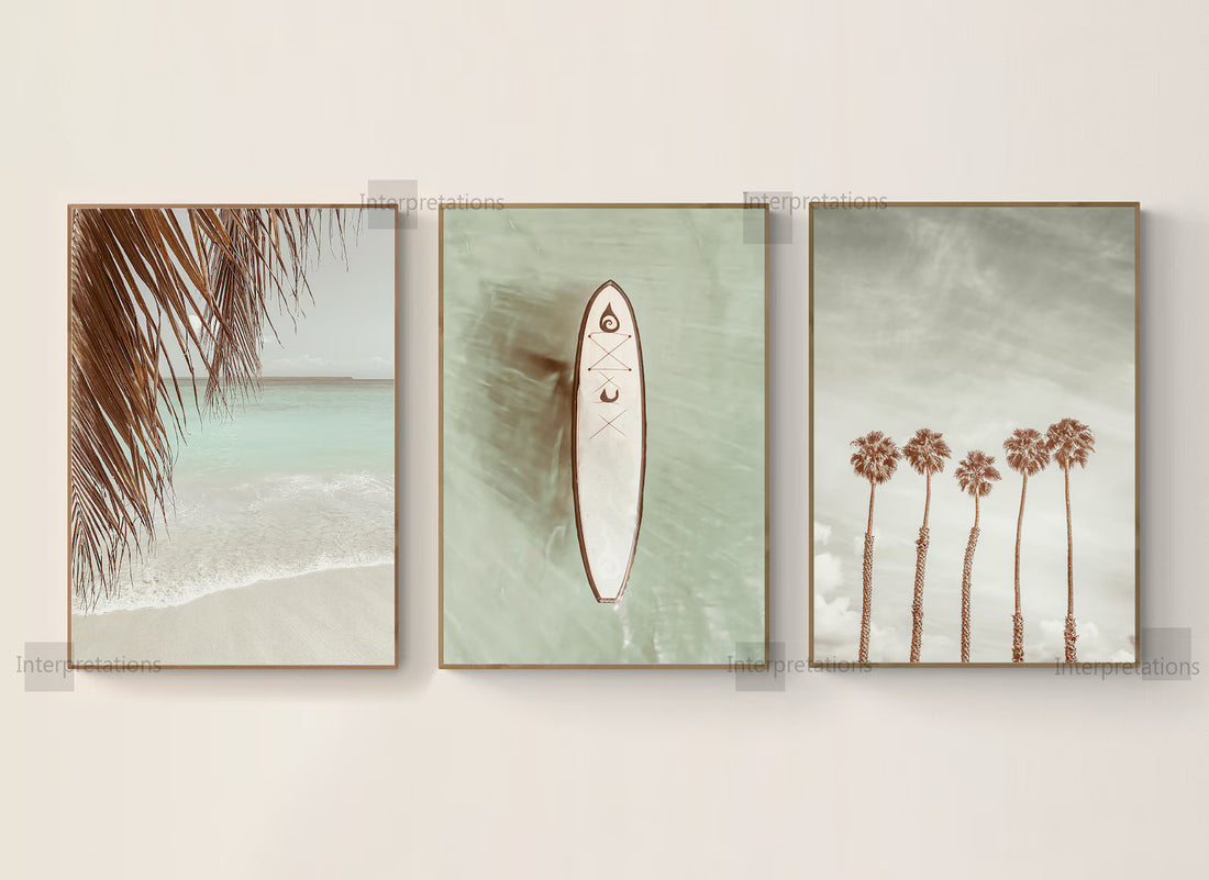 סט ים ושמיים 3 תמונות - ירוק בחלקים
