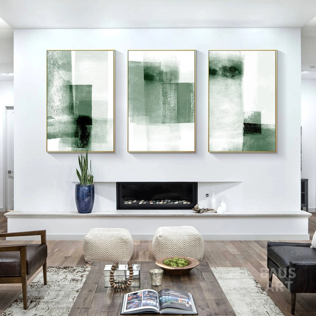 סט אבסטרקטי 3 תמונות - ירוק לבן