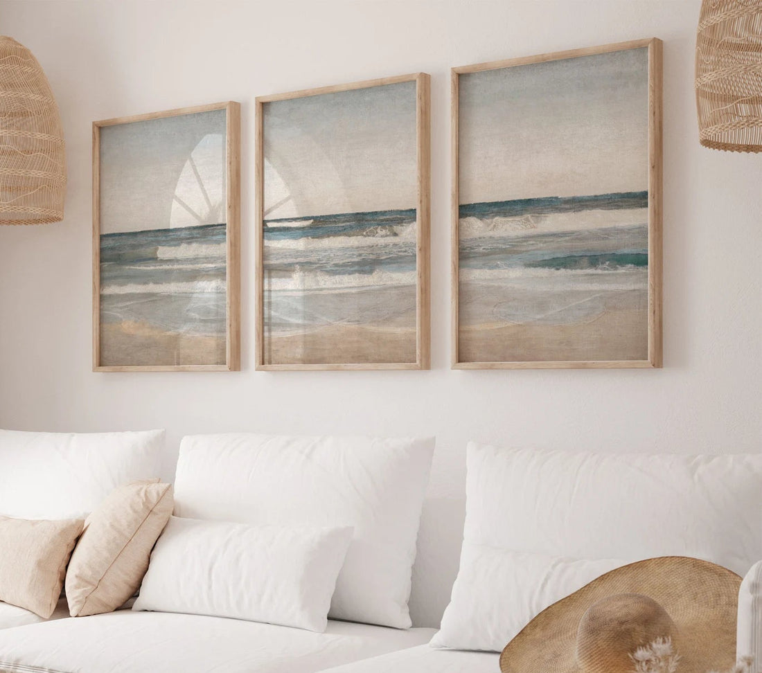 סט ים ושמיים 3 תמונות - המפגש בין חוף וים