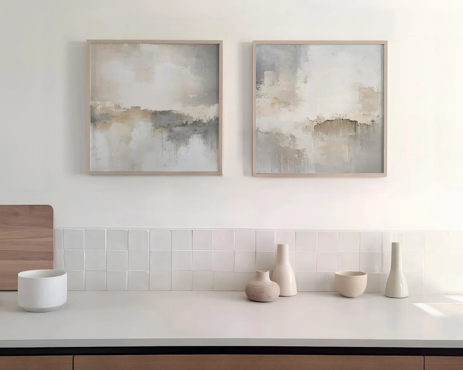 סט אבסטרקטי 2 תמונות - בז' אפור