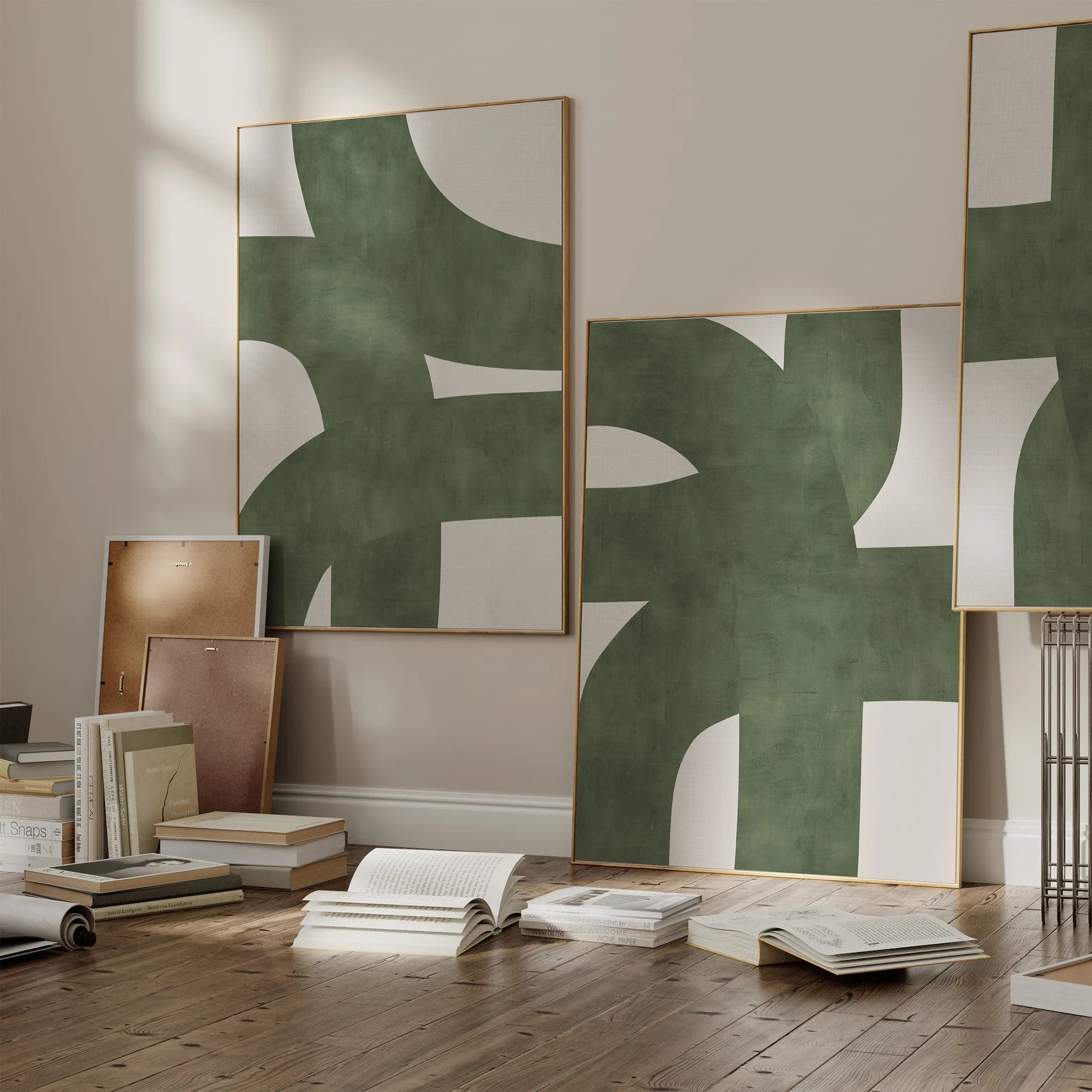 סט אבסטרקטי 2 תמונות - לבן ירוק